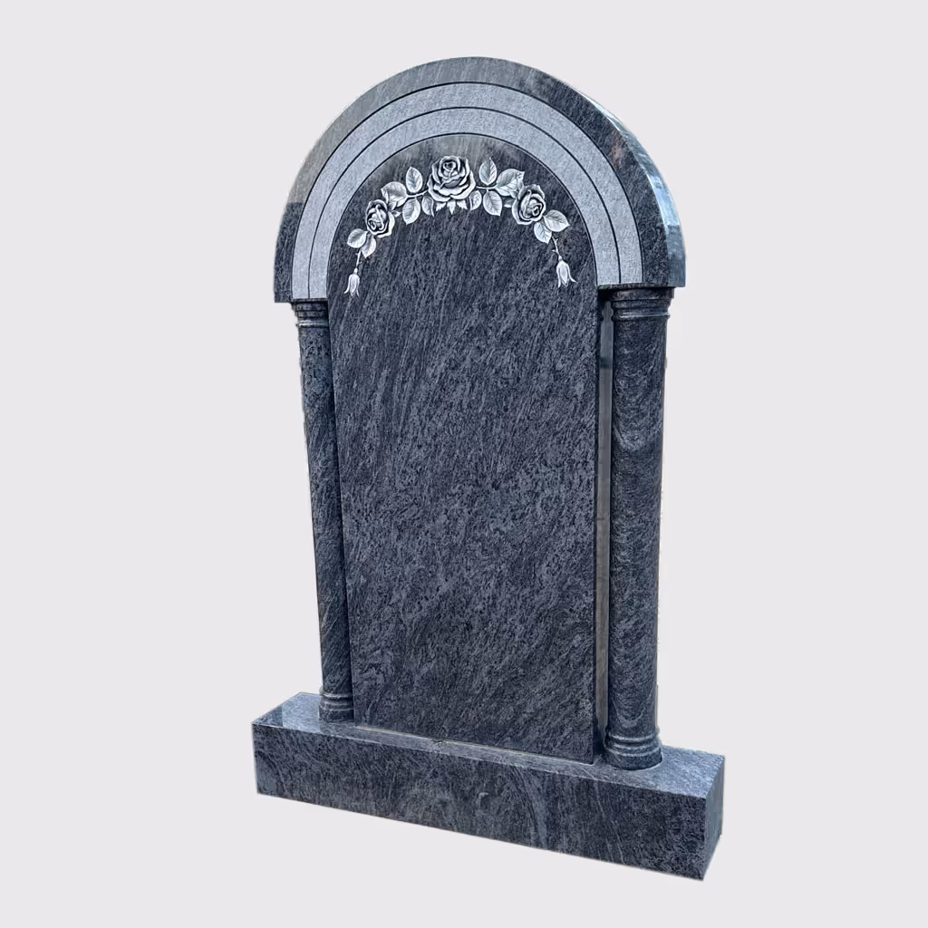 Grabstein Orion Blue Granit mit Säulen & Rosenornament