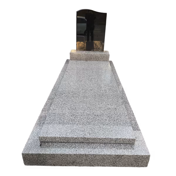 Grabanlage mit Einfassung und Deckel aus Grau Stein und mit Hauptstein aus Schwarze Granit
