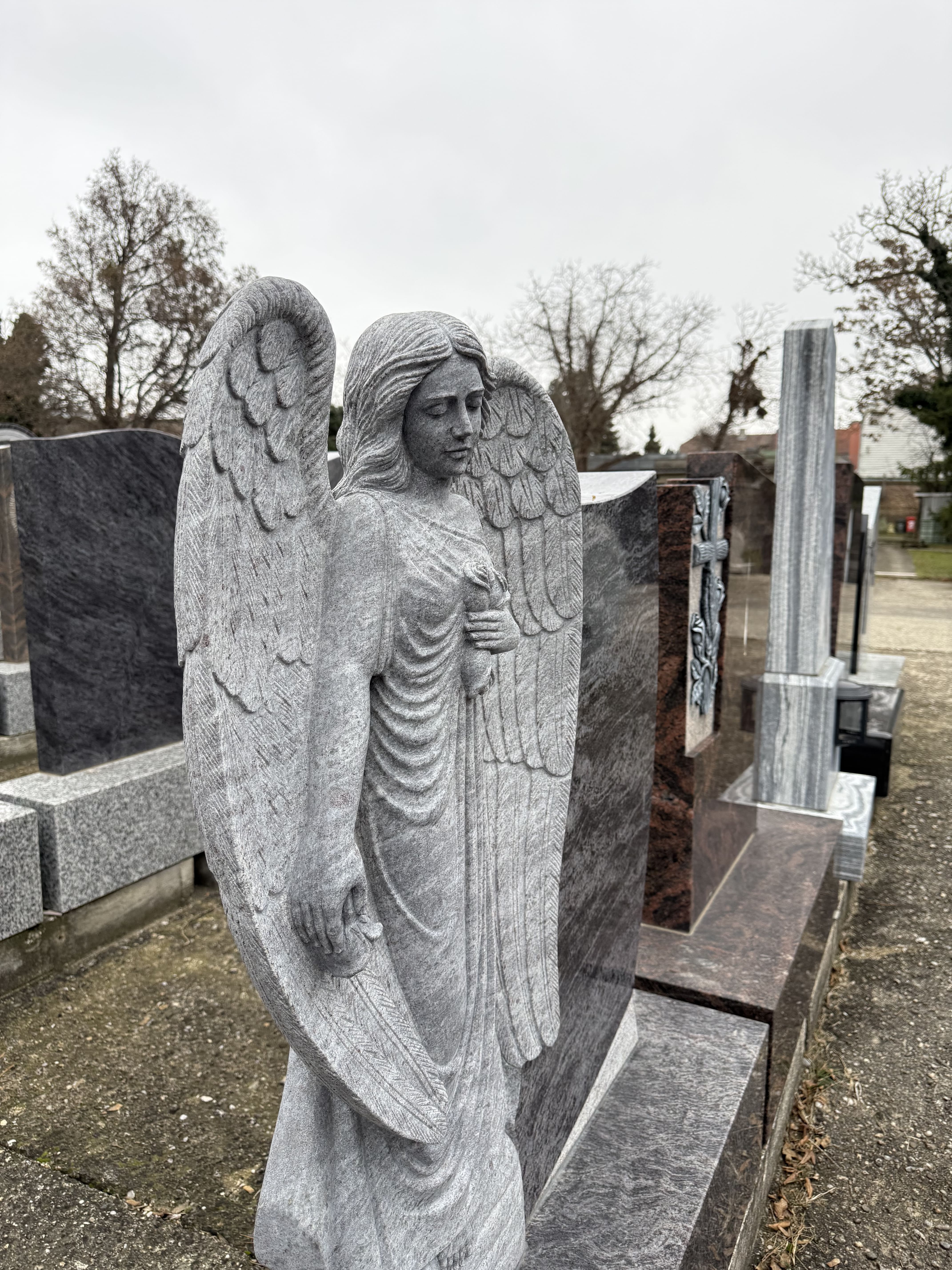 Neben klassischen stehenden Grabsteinen sind Liegende Steine, Liegeplatten, Stelen, Figuren und moderne abstrakte Formen in verschiedenen Variationen möglich. Entsprechend unterscheiden sich auch die Preise.