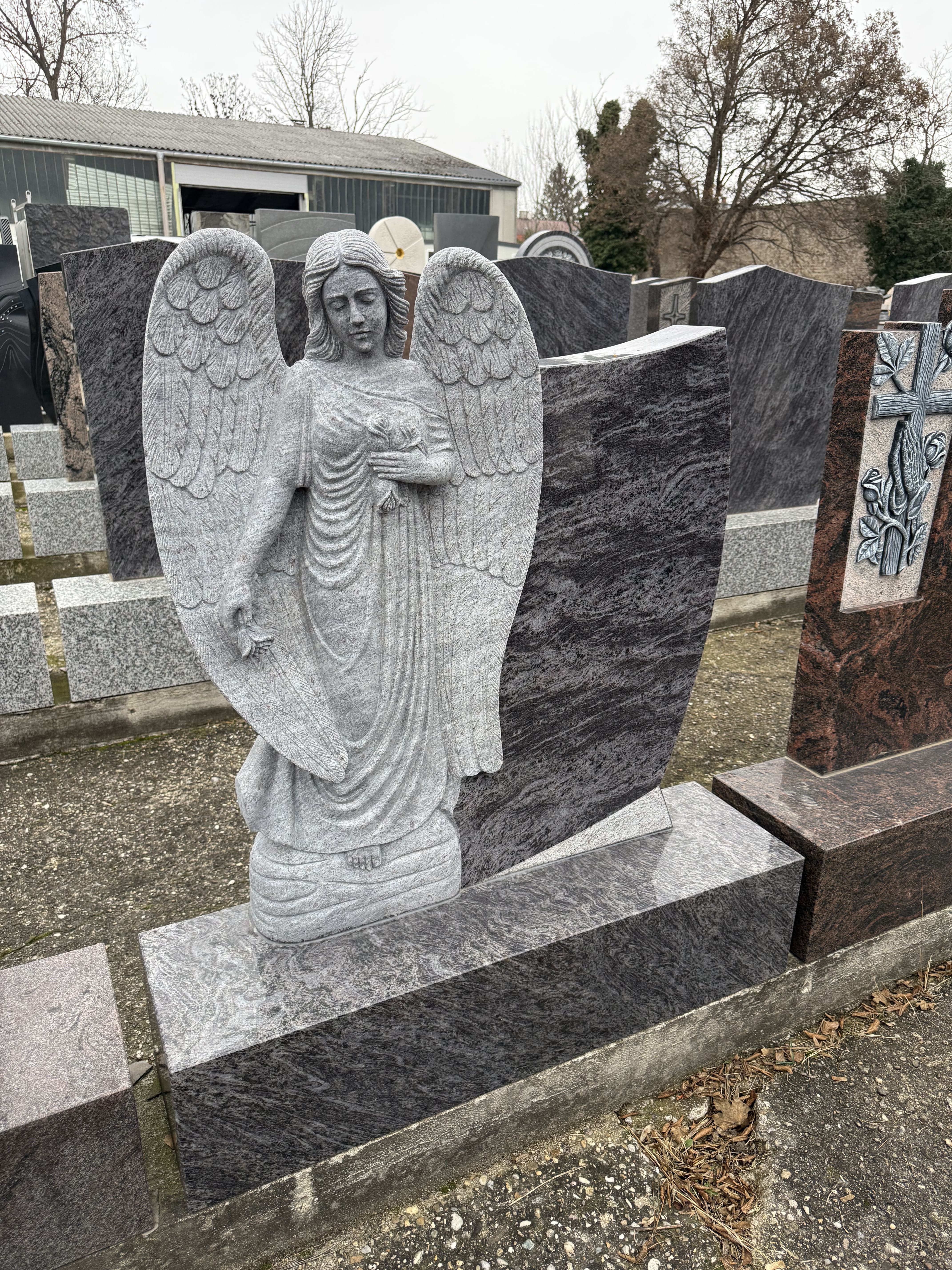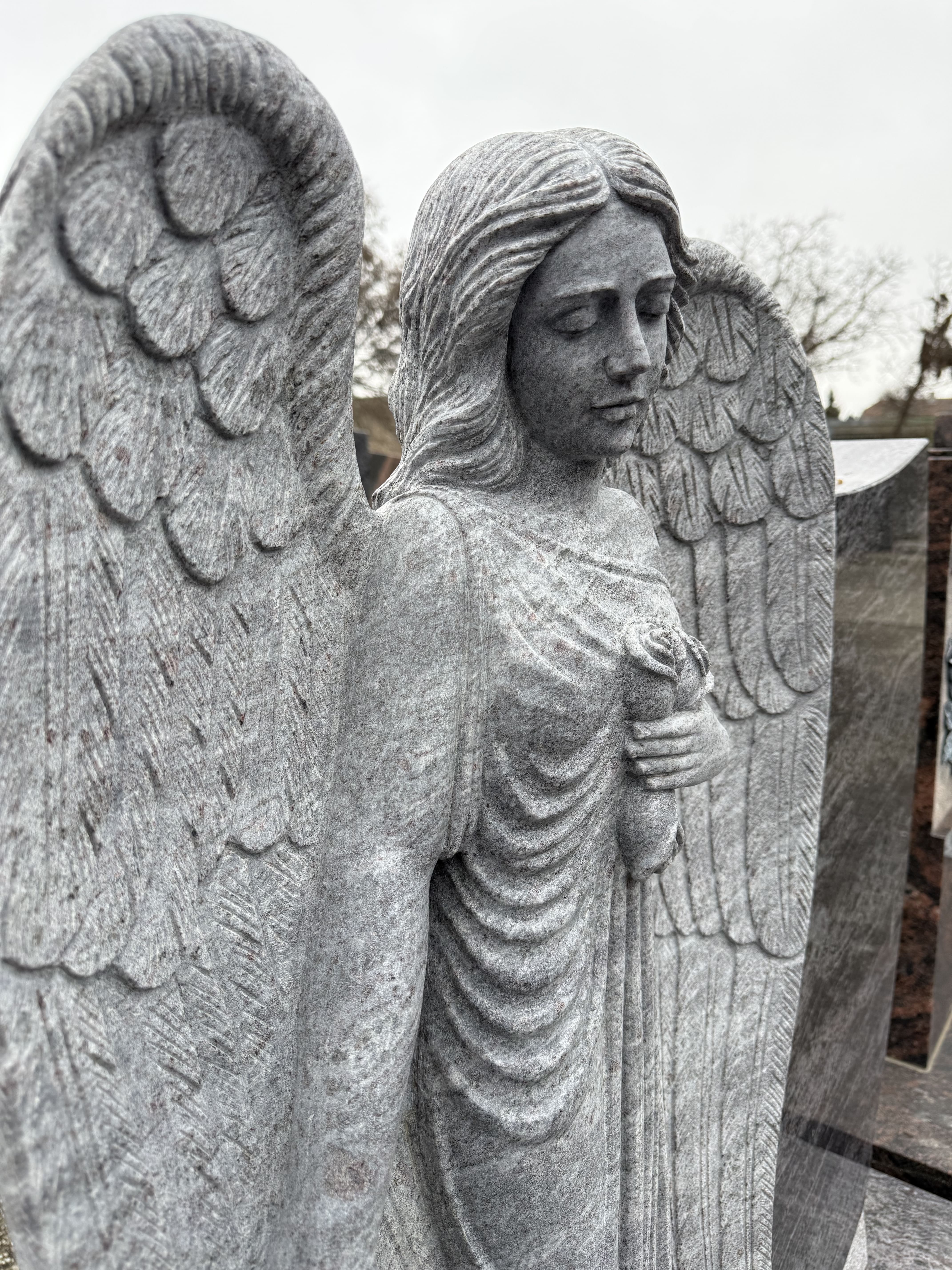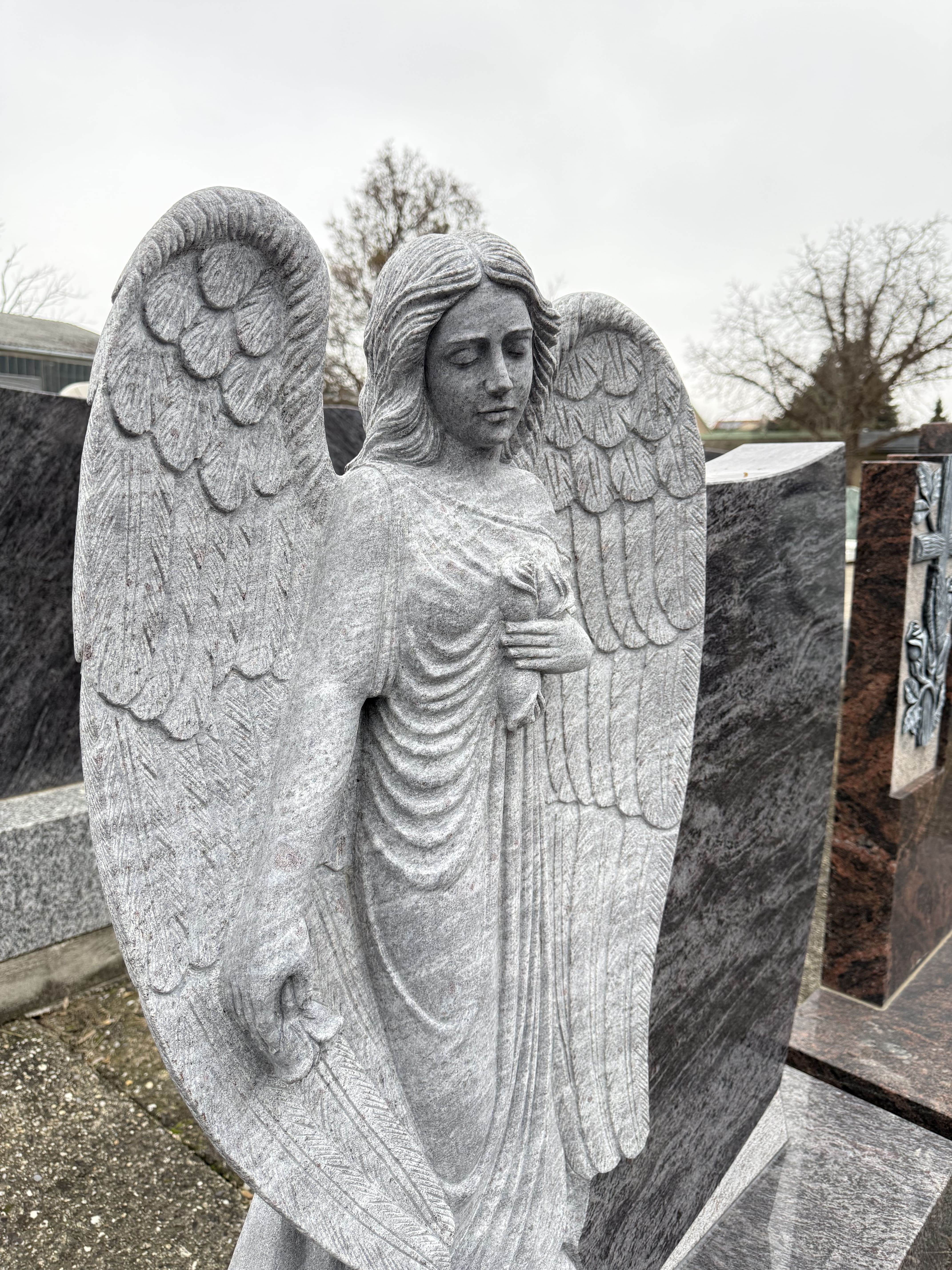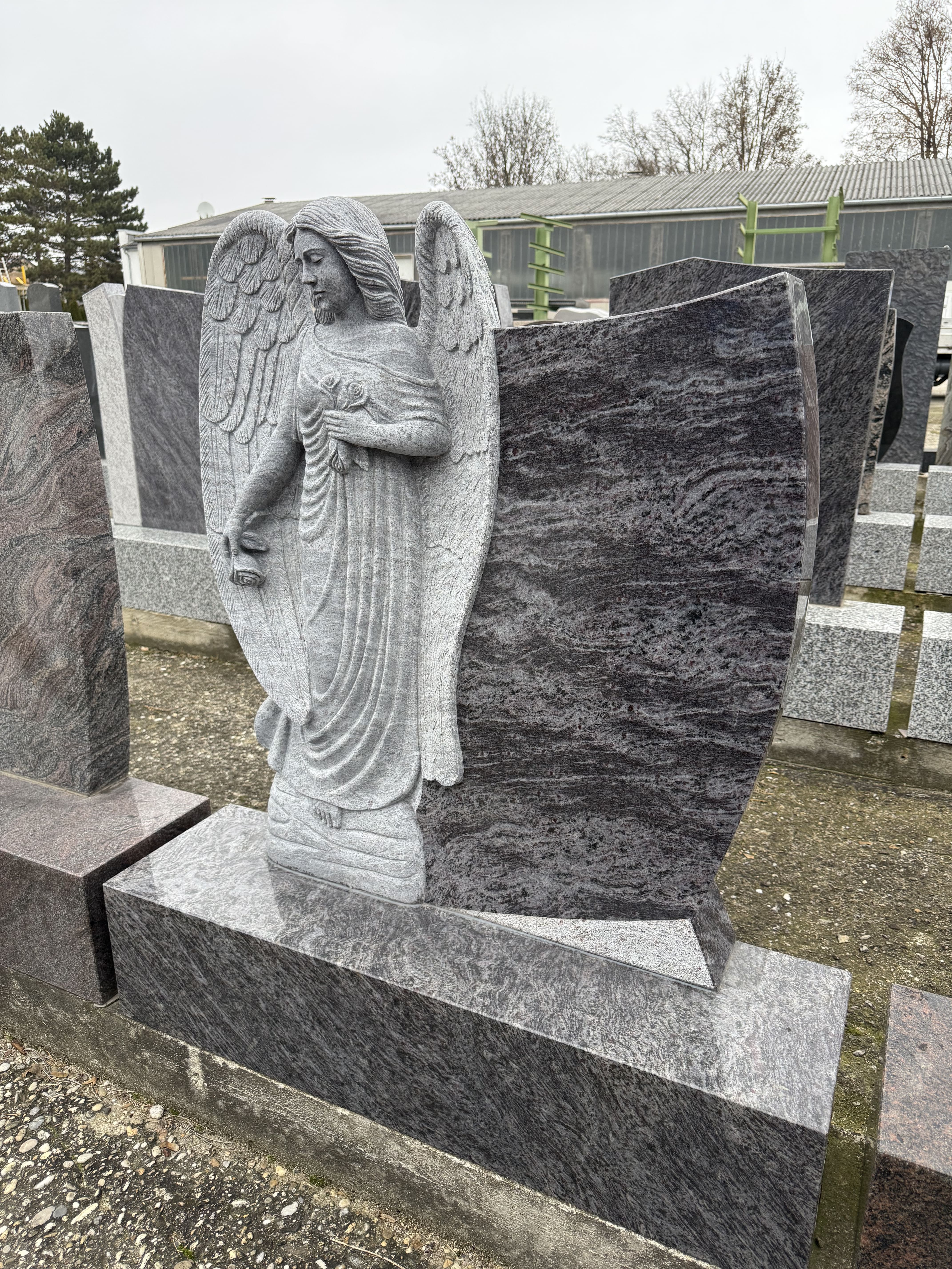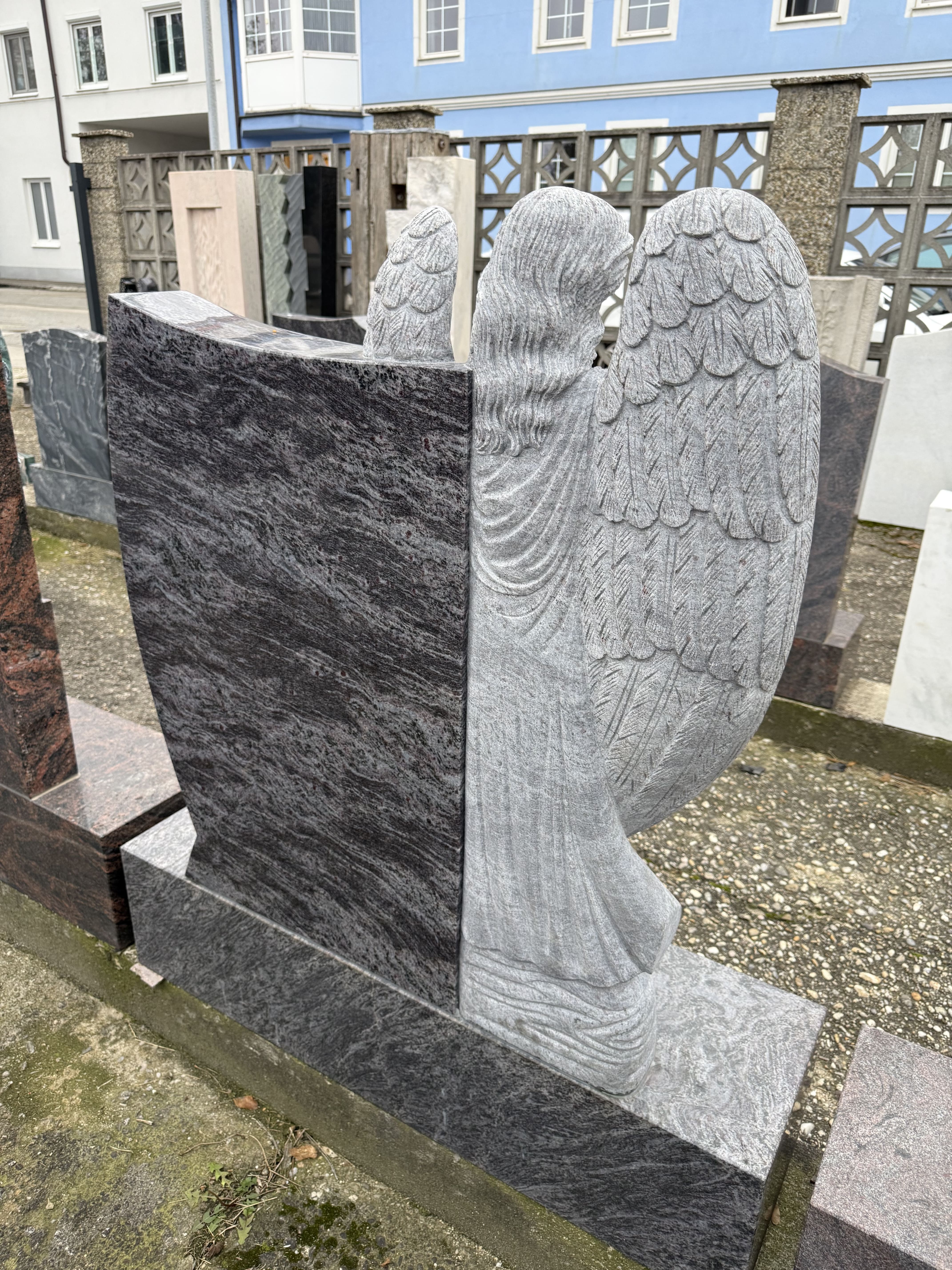 - Material: Orion Blue Granit (poliert), Engel aus hellem Naturstein