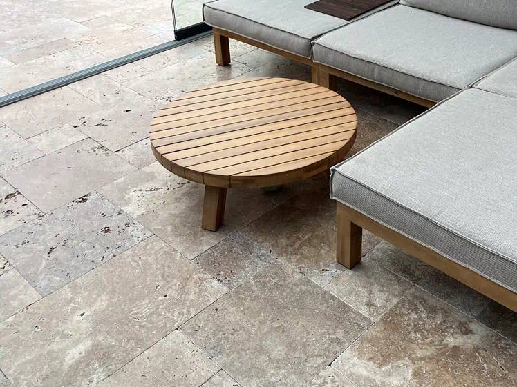 Travertin ist pflegeleicht. Für die regelmäßige Reinigung genügen ein weicher Schwamm und Wasser. Vermeiden Sie aggressive Chemikalien. Für Außenbereiche empfehlen wir eine regelmäßige Imprägnierung.
