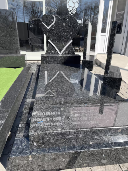 Grabanlage mit Deckplatte aus Premium Labradorit "mit blau Auge" Granit mit Mit Herz Hauptstein